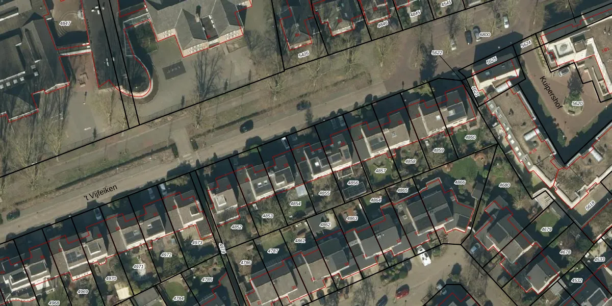 Het perceel waarop 't Vijfeiken 21 staat heeft een oppervlakte van 278 m². Dit is een middelgroot perceel. De perceeloppervlakte wordt geregistreerd door het Kadaster. Gedetailleerde informatie over de maten van dit perceel kunt u vinden in het rapport Kadastrale kaart met maatvoering van 't Vijfeiken 21.