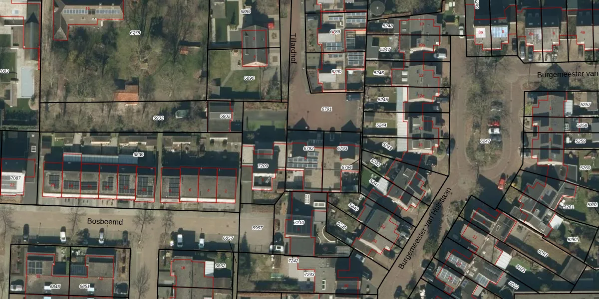 Gebruik de zoekbalk of klik op een perceel voor informatie over de adressen binnen dit perceel.