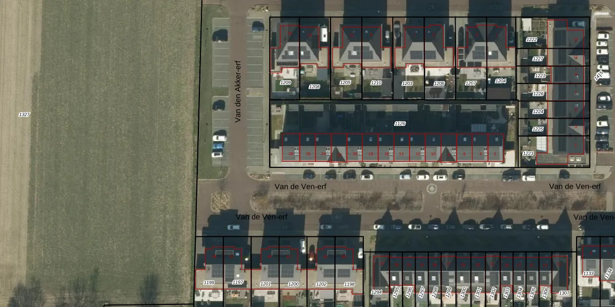 Het perceel waarop Van de Ven-erf 26 staat heeft een oppervlakte van 1775 m². Dit is een zeer groot perceel. De perceeloppervlakte wordt geregistreerd door het Kadaster. Gedetailleerde informatie over de maten van dit perceel kunt u vinden in het rapport Kadastrale kaart met maatvoering van Van de Ven-erf 26.
