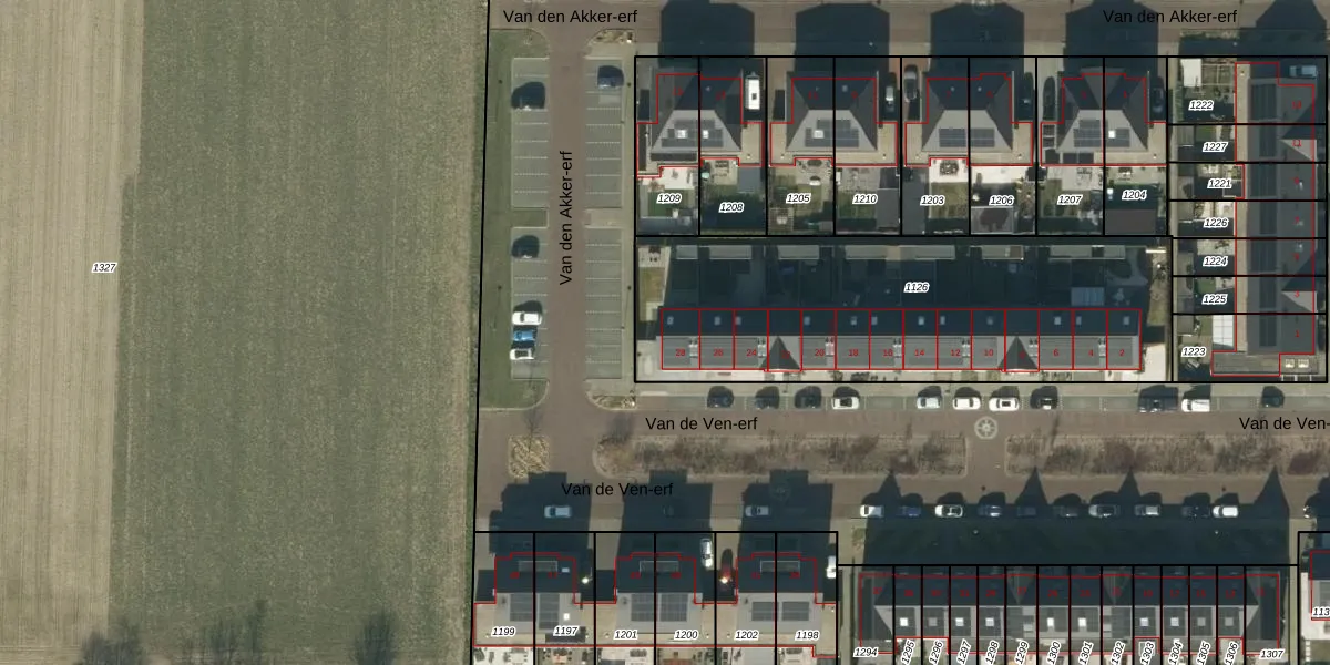 Het perceel waarop Van de Ven-erf 28 staat heeft een oppervlakte van 1775 m². Dit is een zeer groot perceel. De perceeloppervlakte wordt geregistreerd door het Kadaster. Gedetailleerde informatie over de maten van dit perceel kunt u vinden in het rapport Kadastrale kaart met maatvoering van Van de Ven-erf 28.