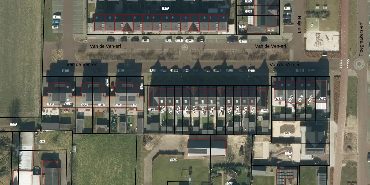 Het perceel waarop Van de Ven-erf 29 staat heeft een oppervlakte van 110 m². Dit is een middelgroot perceel. De perceeloppervlakte wordt geregistreerd door het Kadaster. Gedetailleerde informatie over de maten van dit perceel kunt u vinden in het rapport Kadastrale kaart met maatvoering van Van de Ven-erf 29.