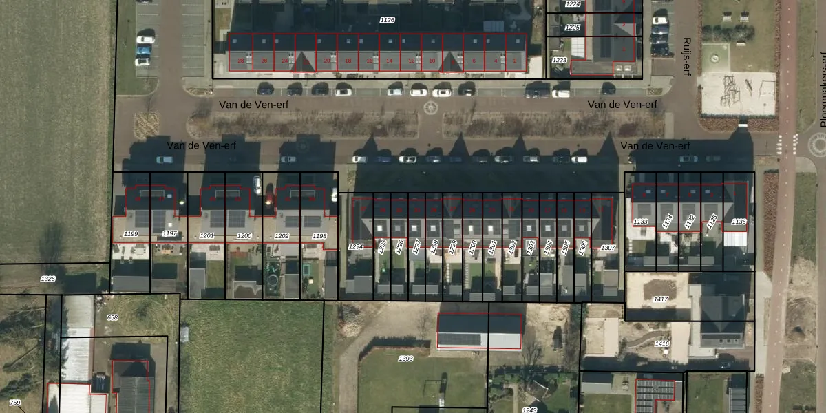 Het perceel waarop Van de Ven-erf 31 staat heeft een oppervlakte van 110 m². Dit is een middelgroot perceel. De perceeloppervlakte wordt geregistreerd door het Kadaster. Gedetailleerde informatie over de maten van dit perceel kunt u vinden in het rapport Kadastrale kaart met maatvoering van Van de Ven-erf 31.