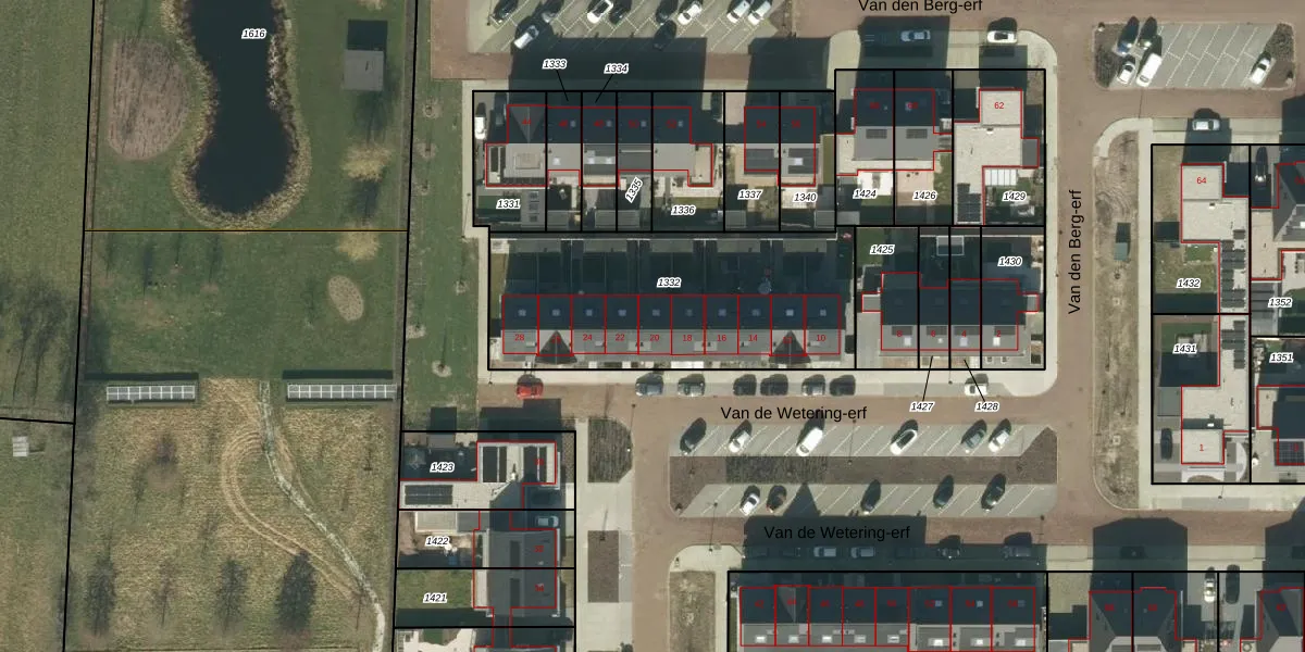 Van de Wetering-erf 20 is gelegen op kadastraal perceel HEE02F1332. Deze kadastrale aanduiding is uniek en wordt gebruikt door het Kadaster om eigendomsrechten en andere zakelijke rechten vast te leggen. Het perceel maakt onderdeel uit van de kadastrale gemeente Heesch.