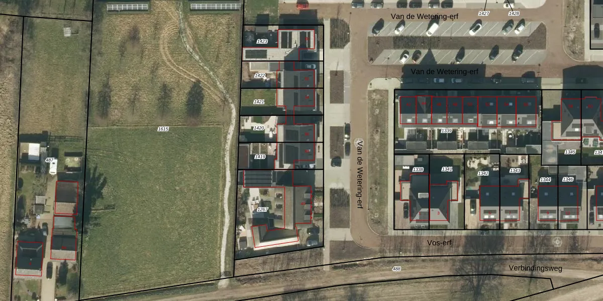 Van de Wetering-erf 38 is een adres in Heesch, dat zich bevindt binnen de gemeentegrenzen van Heesch en de grenzen van de provincie Noord-Brabant. De oppervlakte van het verblijfsobject is met 160 m² aan de grote kant. Het perceel heeft een oppervlakte van 255 m². In vergelijking met de andere adressen in de straat is de oppervlakte van dit object relatief groot. Het grootste verblijfsobject heeft een oppervlakte van 351 m², de oppervlakte van het kleinste object bedraagt 89 m². Van de Wetering-erf 38 ligt in een gebouw uit het jaar 2024. Daarmee behoort het tot de groep panden van na 1984, die we als relatief nieuw bestempelen. Dit pand is het meest recent exemplaar in de straat. Het oudste object komt er uit 2023 en het gemiddelde bouwjaar is 2024. Het verblijfsobject heeft de volgende gebruiksdoelen: 'woonfunctie'.