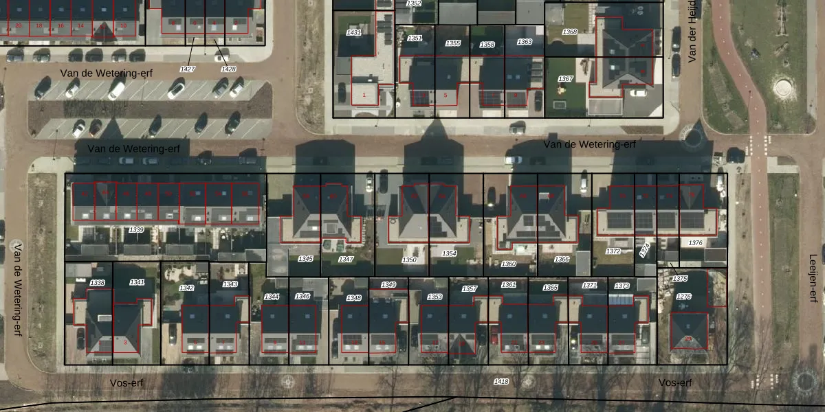 Het perceel waarop Van de Wetering-erf 62 staat heeft een oppervlakte van 330 m². Dit is een groot perceel. De perceeloppervlakte wordt geregistreerd door het Kadaster. Gedetailleerde informatie over de maten van dit perceel kunt u vinden in het rapport Kadastrale kaart met maatvoering van Van de Wetering-erf 62.