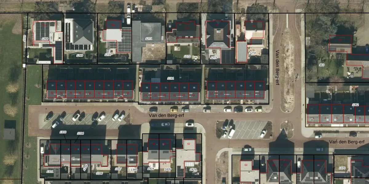 Het perceel waarop Van den Berg-erf 16 staat heeft een oppervlakte van 2605 m². Dit is een zeer groot perceel. De perceeloppervlakte wordt geregistreerd door het Kadaster. Gedetailleerde informatie over de maten van dit perceel kunt u vinden in het rapport Kadastrale kaart met maatvoering van Van den Berg-erf 16.