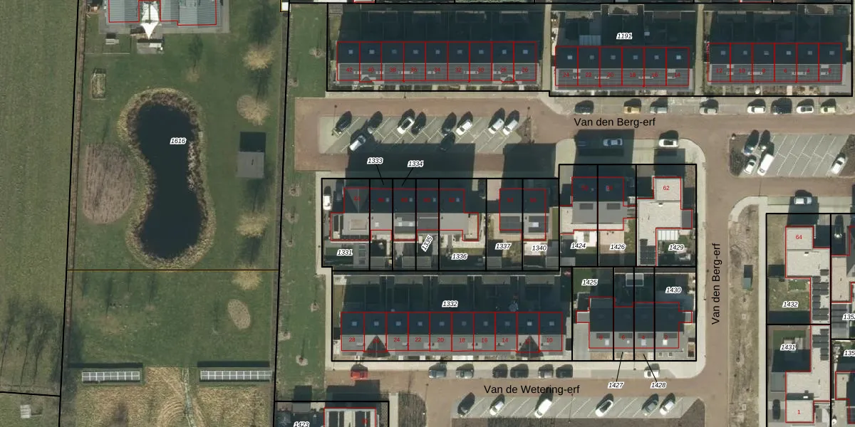 Gebruik de zoekbalk of klik op een perceel voor informatie over de adressen binnen dit perceel.