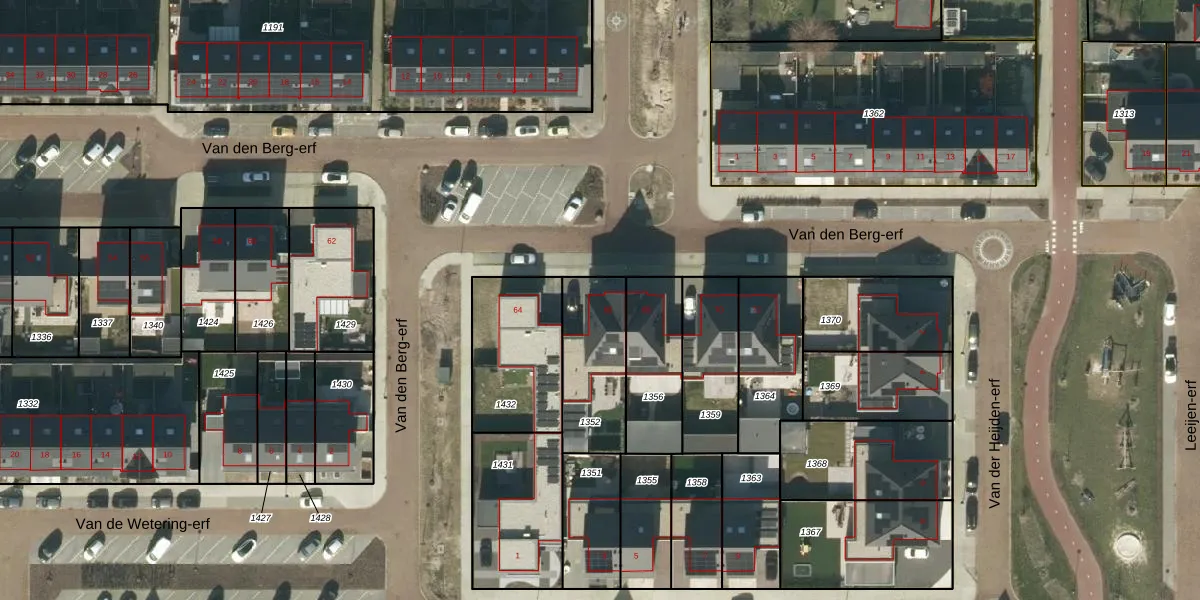 Het perceel waarop Van den Berg-erf 66 staat heeft een oppervlakte van 313 m². Dit is een groot perceel. De perceeloppervlakte wordt geregistreerd door het Kadaster. Gedetailleerde informatie over de maten van dit perceel kunt u vinden in het rapport Kadastrale kaart met maatvoering van Van den Berg-erf 66.