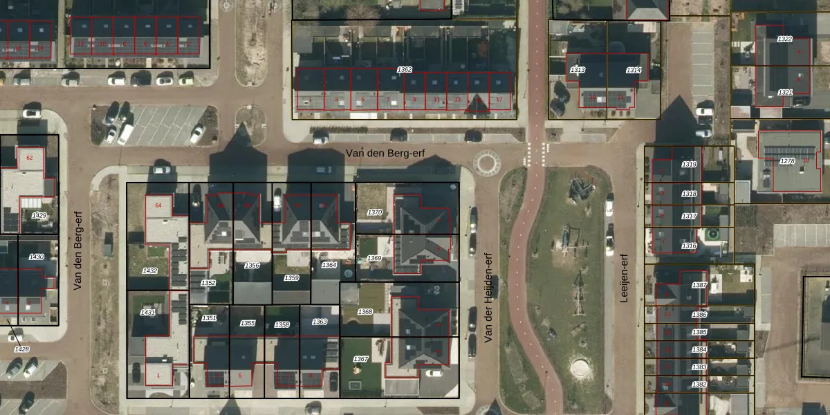 Het perceel waarop Van der Heijden-erf 2 staat heeft een oppervlakte van 312 m². Dit is een groot perceel. De perceeloppervlakte wordt geregistreerd door het Kadaster. Gedetailleerde informatie over de maten van dit perceel kunt u vinden in het rapport Kadastrale kaart met maatvoering van Van der Heijden-erf 2.