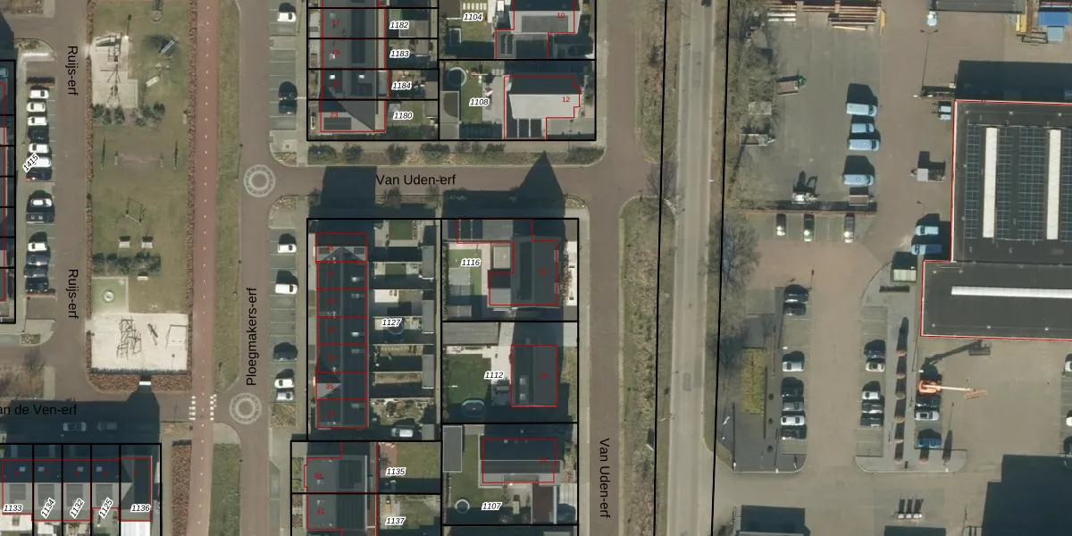 Het perceel waarop Van Uden-erf 14 staat heeft een oppervlakte van 489 m². Dit is een groot perceel. De perceeloppervlakte wordt geregistreerd door het Kadaster. Gedetailleerde informatie over de maten van dit perceel kunt u vinden in het rapport Kadastrale kaart met maatvoering van Van Uden-erf 14.