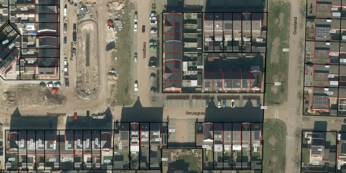 Het perceel waarop het adres ligt is HEE02-A-7063. De afkorting 'HEE02' staat voor kadastrale gemeente Heesch. De gemiddelde perceelgrootte in Heesch is 2870,1 m². Dit perceel is kleiner: de perceeloppervlakte bedraagt 1920 m². Het kleinste perceel in de kadastrale gemeente is 0 m² groot. De grootste perceeloppervlakte is 50,1 ha. Op het perceel liggen in totaal 14 adressen. De huidige grenzen van het perceel zijn digitaal in de Basisregistratie Kadaster (BRK) geregistreerd op 19-11-2018.