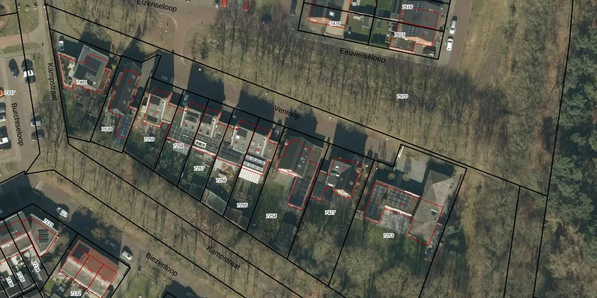 Gebruik de zoekbalk of klik op een perceel voor informatie over de adressen binnen dit perceel.