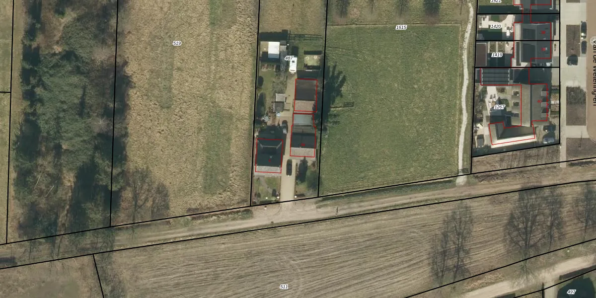 Het adres ligt op het perceel HEE02-F-487, dat zich in de kadastrale gemeente Heesch bevindt. Het perceel is 2148 m² groot. Dat is kleiner dan de gemiddelde perceeloppervlakte in Heesch, dat op 2876,75 m² ligt. Het grootste perceel in de kadastrale gemeente is 50,1 ha. Het kleinste perceel heeft een oppervlakte van 0 m². Op het perceel zijn 2 adressen aanwezig. In de Basisregistratie Kadaster (BRK) werden de grenzen van het perceel geregistreerd op 08-11-2006.