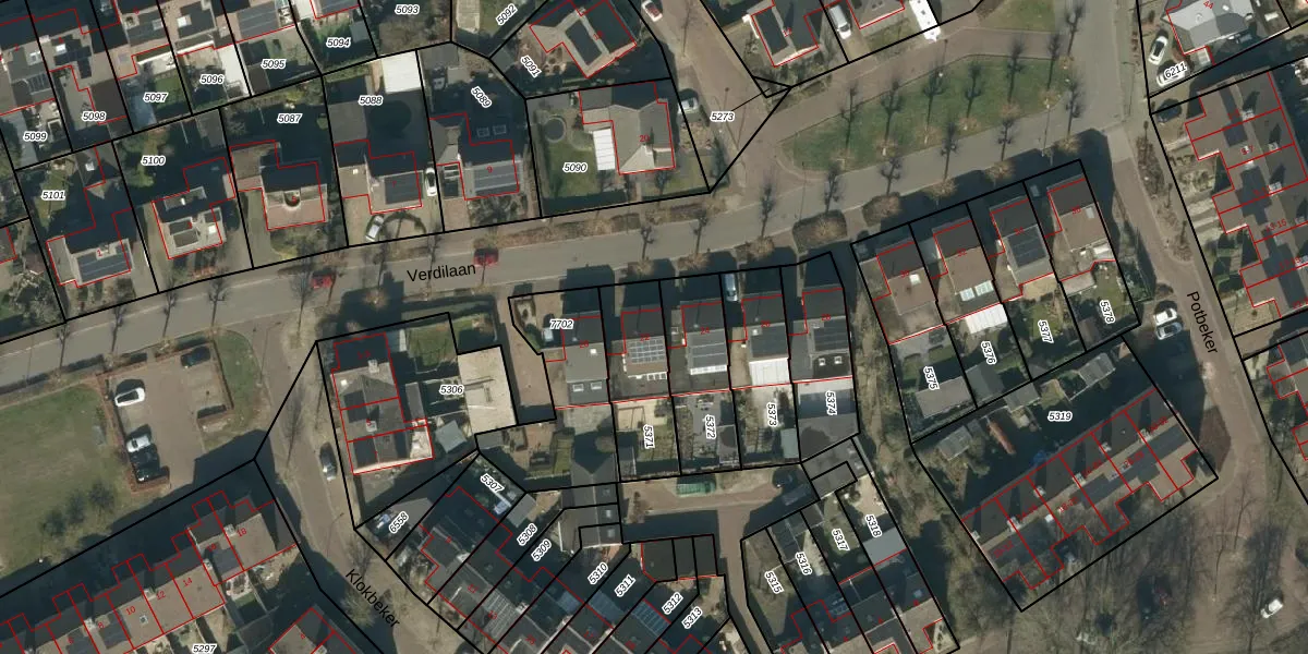 Gebruik de zoekbalk of klik op een perceel voor informatie over de adressen binnen dit perceel.