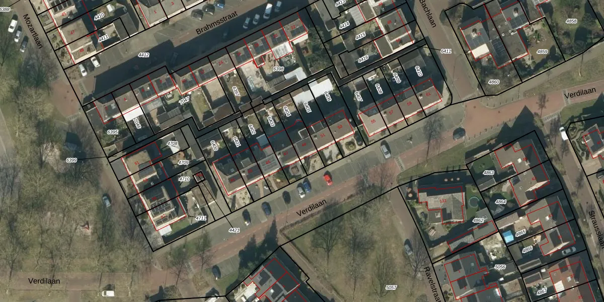 Gebruik de zoekbalk of klik op een perceel voor informatie over de adressen binnen dit perceel.