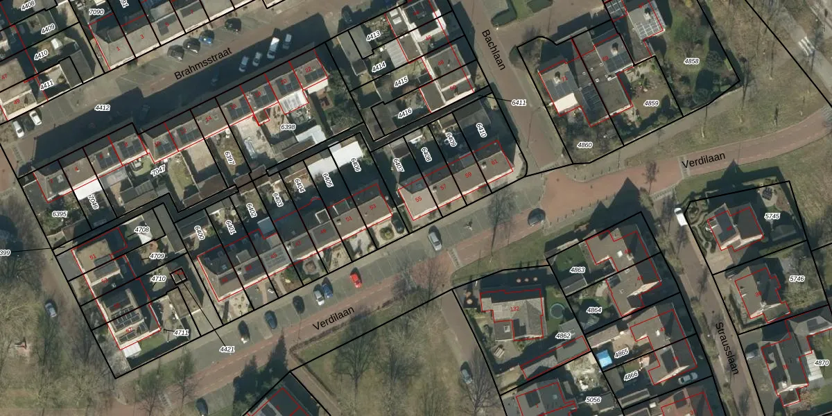 Verdilaan 55 is gelegen op kadastraal perceel HEE02B6407. Deze kadastrale aanduiding is uniek en wordt gebruikt door het Kadaster om eigendomsrechten en andere zakelijke rechten vast te leggen. Het perceel maakt onderdeel uit van de kadastrale gemeente Heesch.