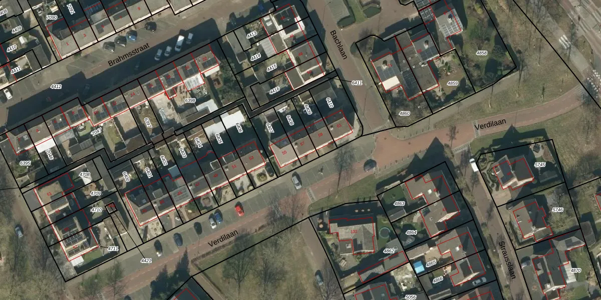 Verdilaan 57 is gelegen op kadastraal perceel HEE02B6408. Deze kadastrale aanduiding is uniek en wordt gebruikt door het Kadaster om eigendomsrechten en andere zakelijke rechten vast te leggen. Het perceel maakt onderdeel uit van de kadastrale gemeente Heesch.
