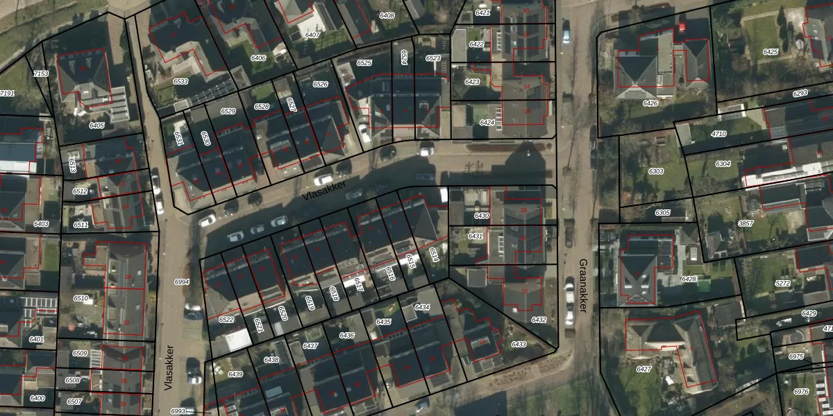 Het perceel waarop Vlasakker 1 staat heeft een oppervlakte van 198 m². Dit is een middelgroot perceel. De perceeloppervlakte wordt geregistreerd door het Kadaster. Gedetailleerde informatie over de maten van dit perceel kunt u vinden in het rapport Kadastrale kaart met maatvoering van Vlasakker 1.