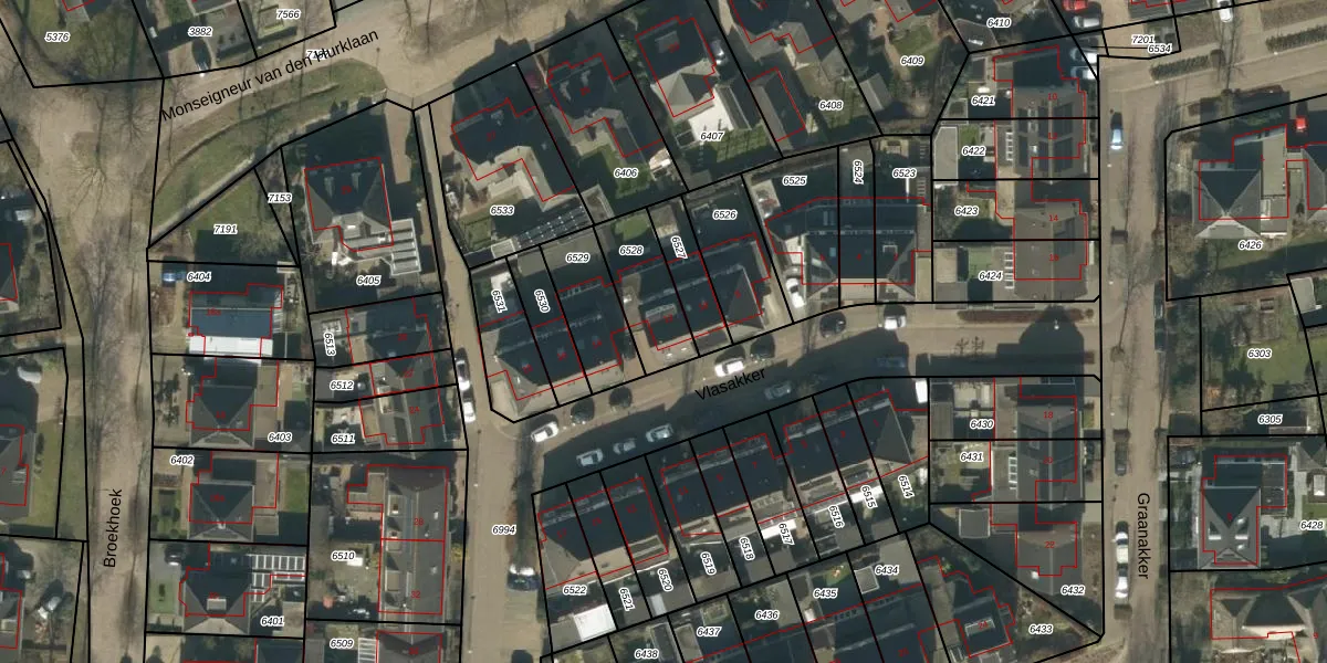 Vlasakker 12 is gelegen op kadastraal perceel HEE02A6528. Deze kadastrale aanduiding is uniek en wordt gebruikt door het Kadaster om eigendomsrechten en andere zakelijke rechten vast te leggen. Het perceel maakt onderdeel uit van de kadastrale gemeente Heesch.