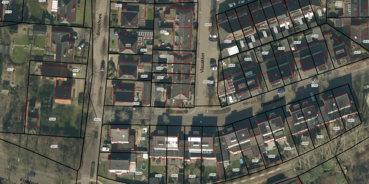 Vlasakker 40 is gelegen op kadastraal perceel HEE02A6583. Deze kadastrale aanduiding is uniek en wordt gebruikt door het Kadaster om eigendomsrechten en andere zakelijke rechten vast te leggen. Het perceel maakt onderdeel uit van de kadastrale gemeente Heesch.