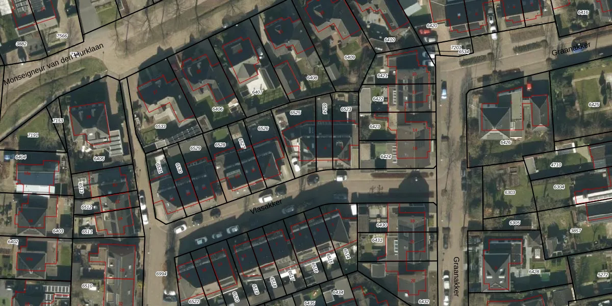 Vlasakker 6 is gelegen op kadastraal perceel HEE02A6525. Deze kadastrale aanduiding is uniek en wordt gebruikt door het Kadaster om eigendomsrechten en andere zakelijke rechten vast te leggen. Het perceel maakt onderdeel uit van de kadastrale gemeente Heesch.
