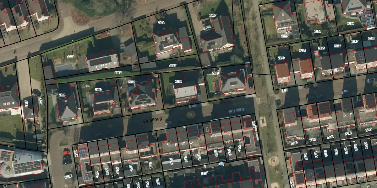 Vleutloop 13 is gelegen op kadastraal perceel HEE02B7184. Deze kadastrale aanduiding is uniek en wordt gebruikt door het Kadaster om eigendomsrechten en andere zakelijke rechten vast te leggen. Het perceel maakt onderdeel uit van de kadastrale gemeente Heesch.