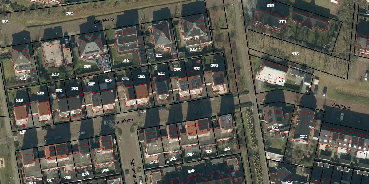 Vleutloop 35 is gelegen op kadastraal perceel HEE02B7202. Deze kadastrale aanduiding is uniek en wordt gebruikt door het Kadaster om eigendomsrechten en andere zakelijke rechten vast te leggen. Het perceel maakt onderdeel uit van de kadastrale gemeente Heesch.