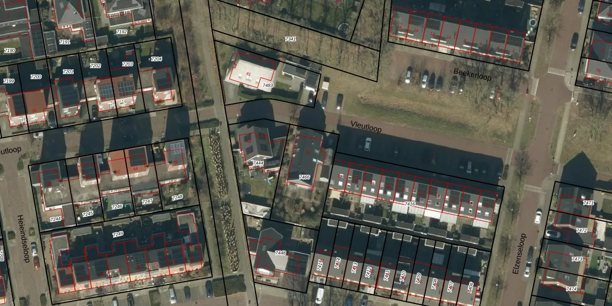 Vleutloop 50 is gelegen op kadastraal perceel HEE02B7466. Deze kadastrale aanduiding is uniek en wordt gebruikt door het Kadaster om eigendomsrechten en andere zakelijke rechten vast te leggen. Het perceel maakt onderdeel uit van de kadastrale gemeente Heesch.