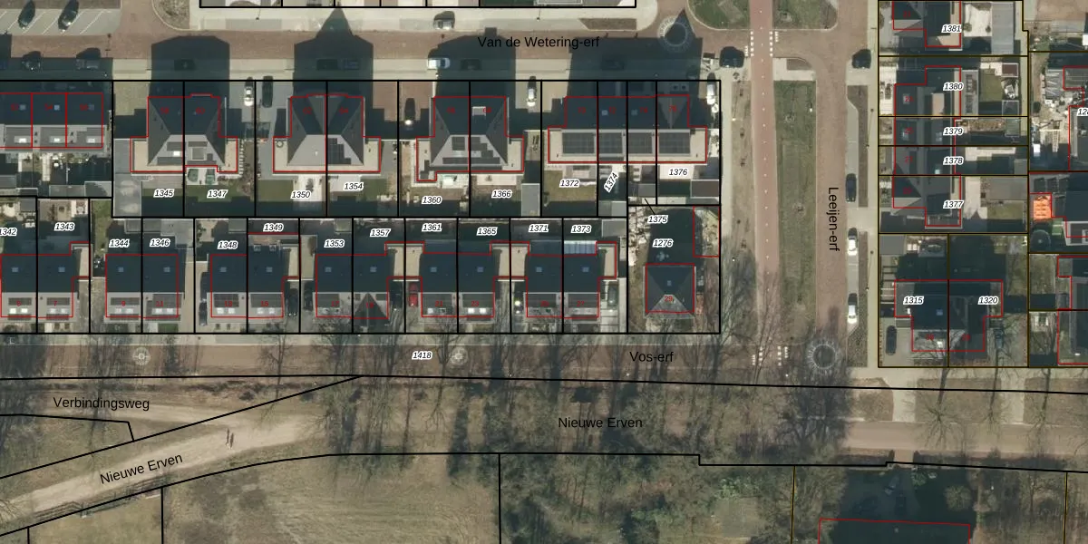Het perceel waarop Vos-erf 25 staat heeft een oppervlakte van 207 m². Dit is een middelgroot perceel. De perceeloppervlakte wordt geregistreerd door het Kadaster. Gedetailleerde informatie over de maten van dit perceel kunt u vinden in het rapport Kadastrale kaart met maatvoering van Vos-erf 25.