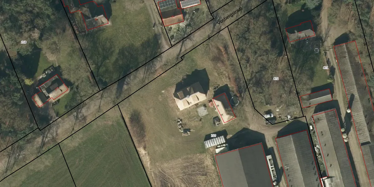 Het perceel waarop Vosbergstraat 18 staat heeft een oppervlakte van 1,5 ha. Dit is een zeer groot perceel. De perceeloppervlakte wordt geregistreerd door het Kadaster. Gedetailleerde informatie over de maten van dit perceel kunt u vinden in het rapport Kadastrale kaart met maatvoering van Vosbergstraat 18.