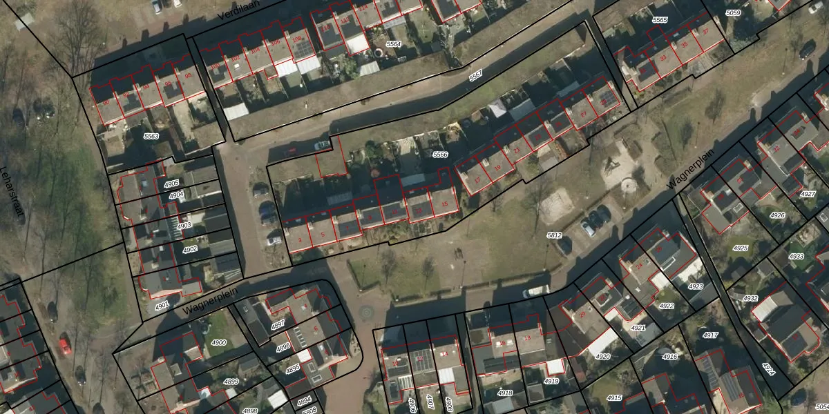 Wagnerplein 13 is gelegen op kadastraal perceel HEE02B5566. Deze kadastrale aanduiding is uniek en wordt gebruikt door het Kadaster om eigendomsrechten en andere zakelijke rechten vast te leggen. Het perceel maakt onderdeel uit van de kadastrale gemeente Heesch.
