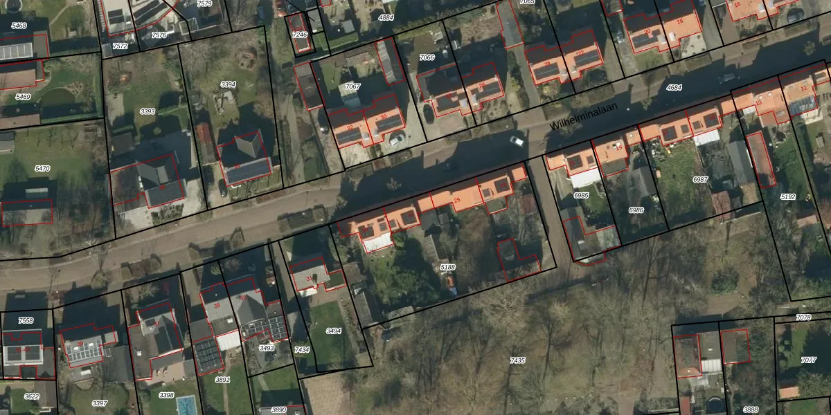 Het perceel waarop Wilhelminalaan 27 staat heeft een oppervlakte van 1302 m². Dit is een zeer groot perceel. De perceeloppervlakte wordt geregistreerd door het Kadaster. Gedetailleerde informatie over de maten van dit perceel kunt u vinden in het rapport Kadastrale kaart met maatvoering van Wilhelminalaan 27.