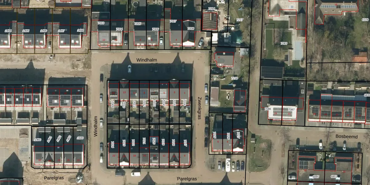 Gebruik de zoekbalk of klik op een perceel voor informatie over de adressen binnen dit perceel.
