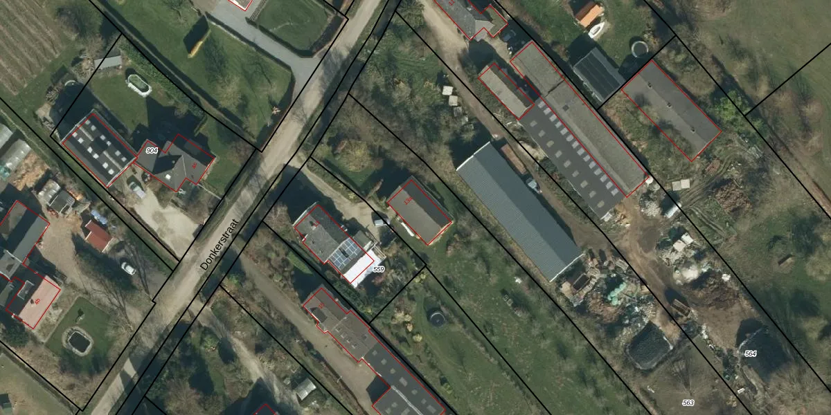 Het perceel waarop Donkerstraat 13-a staat heeft een oppervlakte van 4173 m². Dit is een zeer groot perceel. De perceeloppervlakte wordt geregistreerd door het Kadaster. Gedetailleerde informatie over de maten van dit perceel kunt u vinden in het rapport Kadastrale kaart met maatvoering van Donkerstraat 13-a.