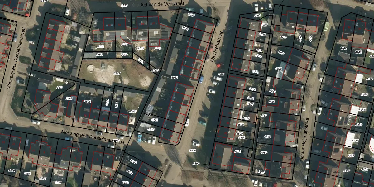 Het perceel waarop Abt Neefsstraat 14 staat heeft een oppervlakte van 990 m². Dit is een groot perceel. De perceeloppervlakte wordt geregistreerd door het Kadaster. Gedetailleerde informatie over de maten van dit perceel kunt u vinden in het rapport Kadastrale kaart met maatvoering van Abt Neefsstraat 14.