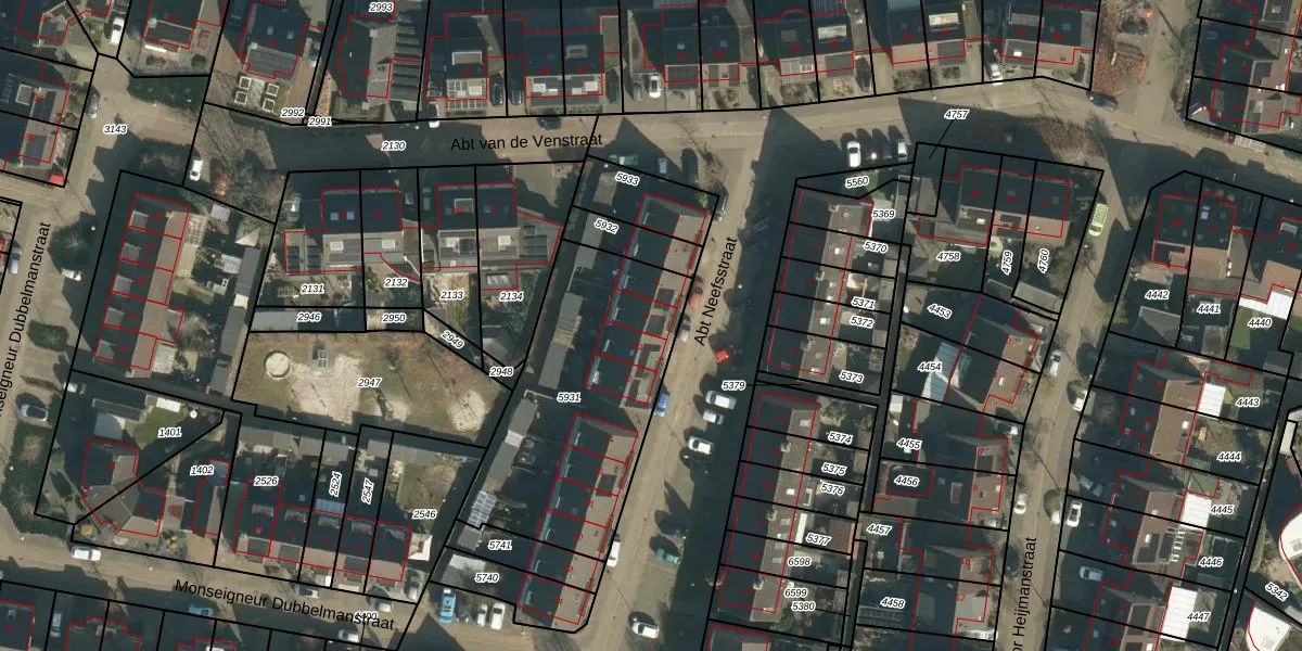 Het perceel waarop Abt Neefsstraat 8 staat heeft een oppervlakte van 990 m². Dit is een groot perceel. De perceeloppervlakte wordt geregistreerd door het Kadaster. Gedetailleerde informatie over de maten van dit perceel kunt u vinden in het rapport Kadastrale kaart met maatvoering van Abt Neefsstraat 8.