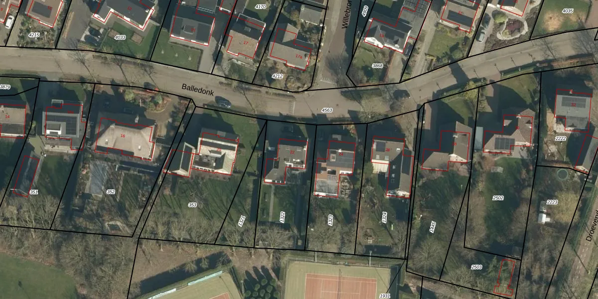 Het perceel waarop Balledonk 22 staat heeft een oppervlakte van 696 m². Dit is een groot perceel. De perceeloppervlakte wordt geregistreerd door het Kadaster. Gedetailleerde informatie over de maten van dit perceel kunt u vinden in het rapport Kadastrale kaart met maatvoering van Balledonk 22.