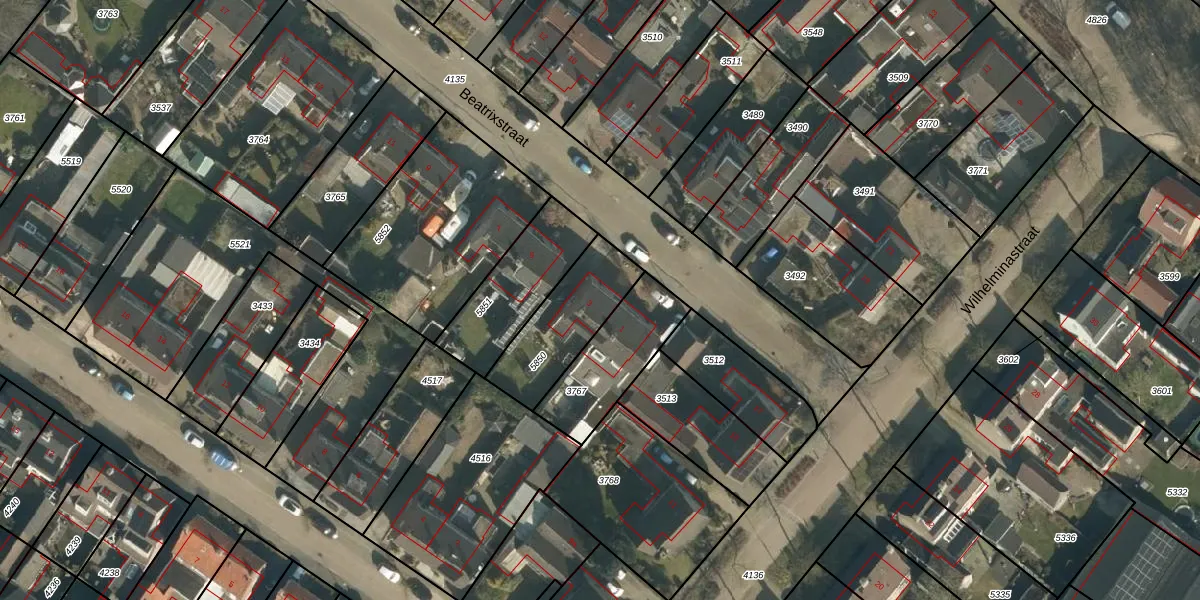 Het perceel waarop Beatrixstraat 3 staat heeft een oppervlakte van 305 m². Dit is een groot perceel. De perceeloppervlakte wordt geregistreerd door het Kadaster. Gedetailleerde informatie over de maten van dit perceel kunt u vinden in het rapport Kadastrale kaart met maatvoering van Beatrixstraat 3.