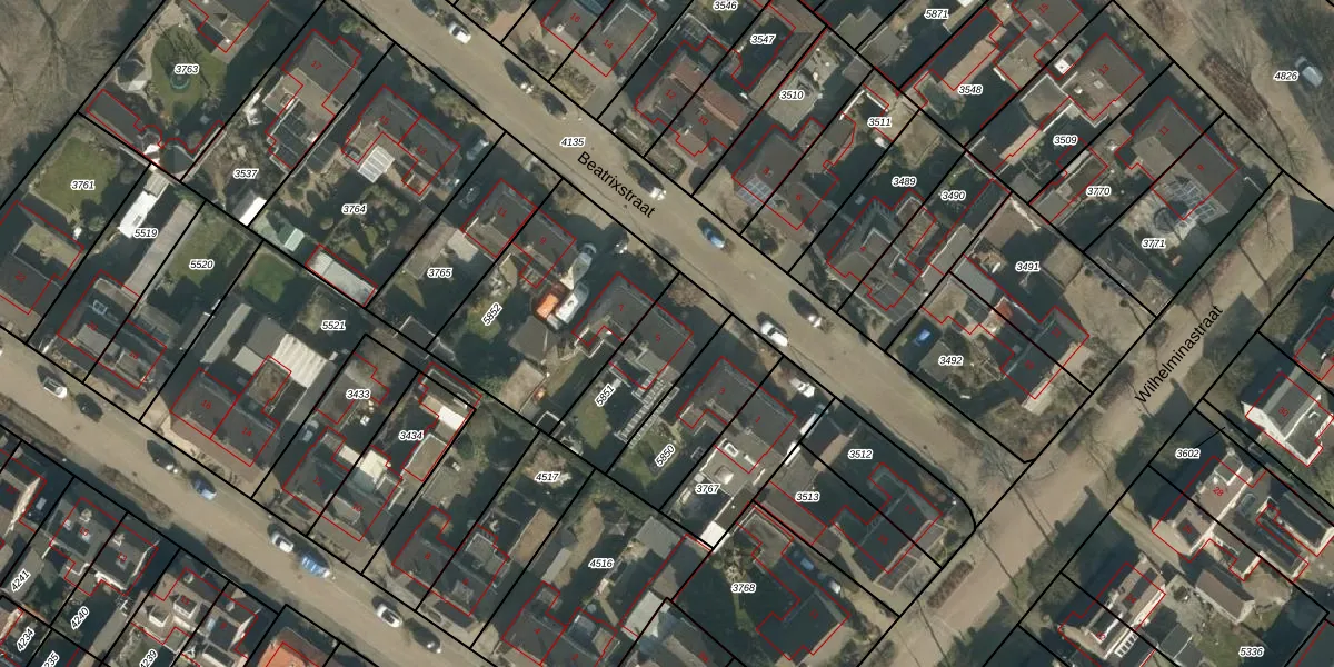 Het perceel waarop Beatrixstraat 5 staat heeft een oppervlakte van 315 m². Dit is een groot perceel. De perceeloppervlakte wordt geregistreerd door het Kadaster. Gedetailleerde informatie over de maten van dit perceel kunt u vinden in het rapport Kadastrale kaart met maatvoering van Beatrixstraat 5.