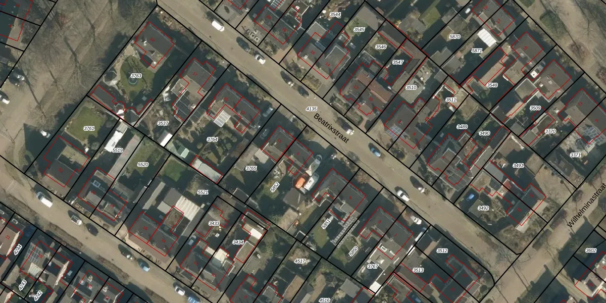 Het perceel waarop Beatrixstraat 9 staat heeft een oppervlakte van 730 m². Dit is een groot perceel. De perceeloppervlakte wordt geregistreerd door het Kadaster. Gedetailleerde informatie over de maten van dit perceel kunt u vinden in het rapport Kadastrale kaart met maatvoering van Beatrixstraat 9.