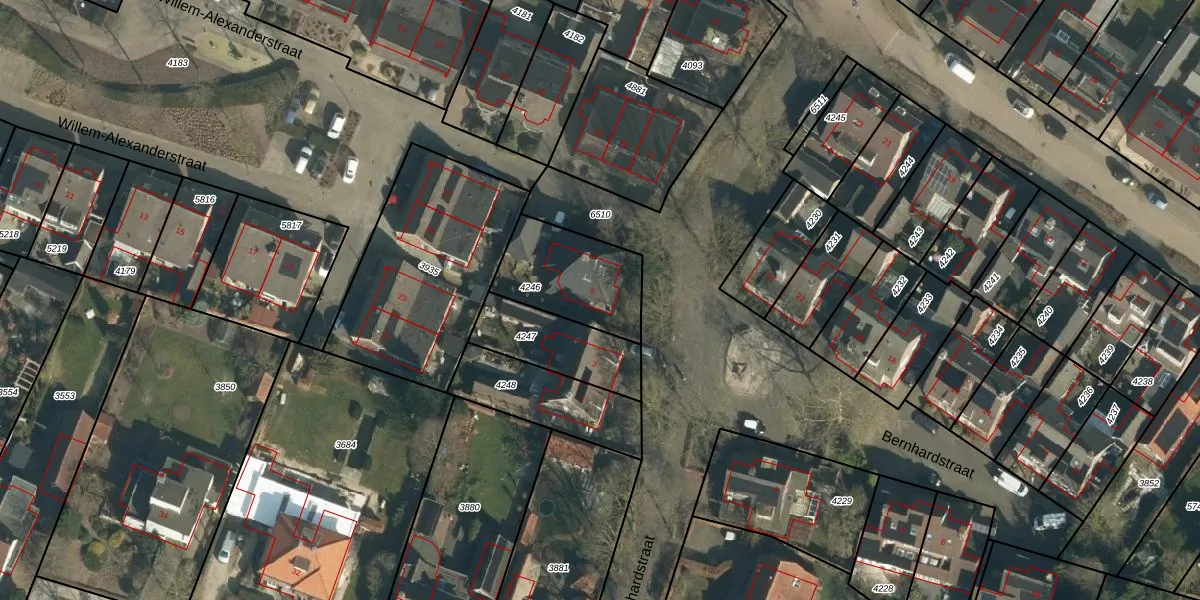 Bernhardstraat 5 is gelegen op kadastraal perceel HWK02C4246. Deze kadastrale aanduiding is uniek en wordt gebruikt door het Kadaster om eigendomsrechten en andere zakelijke rechten vast te leggen. Het perceel maakt onderdeel uit van de kadastrale gemeente Heeswijk-Dinther.