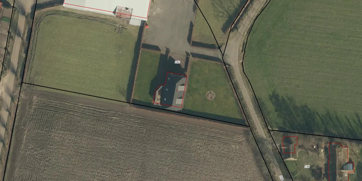 Het adres ligt op het perceel HWK02-F-242, dat zich in de kadastrale gemeente Heeswijk-Dinther bevindt. De gemiddelde perceeloppervlakte in de kadastrale gemeente Heeswijk-Dinther is 4905,09 m². Dit perceel is met zijn 8810 m² dus groter dan gemiddeld. Het grootste perceel in de kadastrale gemeente is 23,1 ha. Het kleinste perceel heeft een oppervlakte van 0 m². Op het perceel zijn 2 adressen aanwezig. De huidige grenzen van het perceel zijn digitaal in de Basisregistratie Kadaster (BRK) geregistreerd op 05-10-2007.
