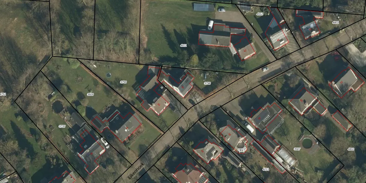 Het perceel waarop Eikenhoek 45 staat heeft een oppervlakte van 600 m². Dit is een groot perceel. De perceeloppervlakte wordt geregistreerd door het Kadaster. Gedetailleerde informatie over de maten van dit perceel kunt u vinden in het rapport Kadastrale kaart met maatvoering van Eikenhoek 45.