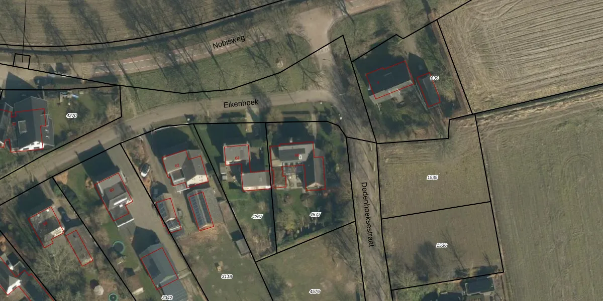Eikenhoek 66 is gelegen op kadastraal perceel HWK02C4577. Deze kadastrale aanduiding is uniek en wordt gebruikt door het Kadaster om eigendomsrechten en andere zakelijke rechten vast te leggen. Het perceel maakt onderdeel uit van de kadastrale gemeente Heeswijk-Dinther.