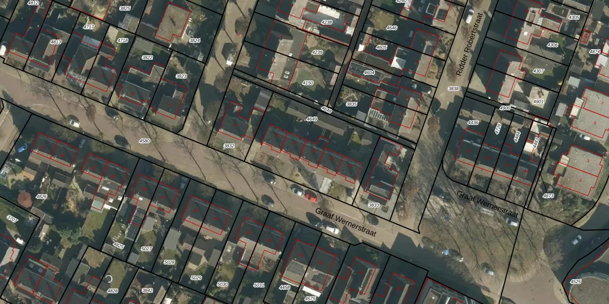 Het perceel waarop Graaf Wernerstraat 19 staat heeft een oppervlakte van 948 m². Dit is een groot perceel. De perceeloppervlakte wordt geregistreerd door het Kadaster. Gedetailleerde informatie over de maten van dit perceel kunt u vinden in het rapport Kadastrale kaart met maatvoering van Graaf Wernerstraat 19.