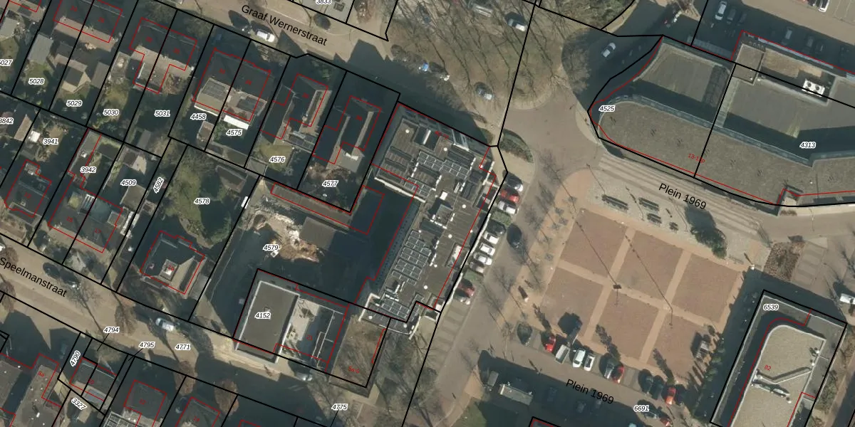 Graaf Wernerstraat 52 is gelegen op kadastraal perceel HWK02B4579. Deze kadastrale aanduiding is uniek en wordt gebruikt door het Kadaster om eigendomsrechten en andere zakelijke rechten vast te leggen. Het perceel maakt onderdeel uit van de kadastrale gemeente Heeswijk-Dinther.