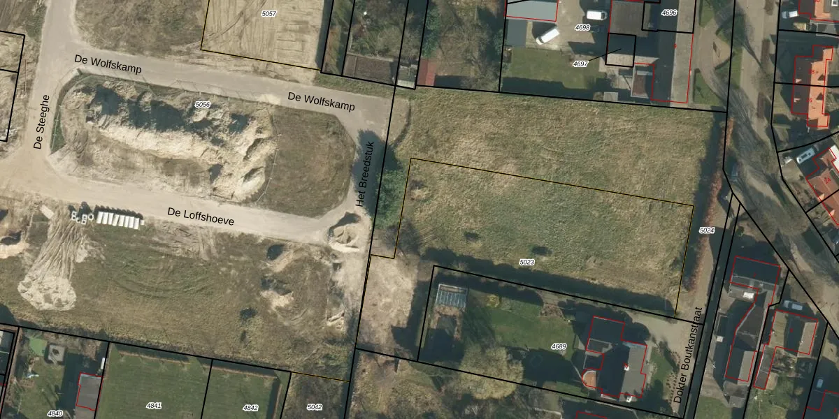 Het Breedstuk 5 is gelegen op kadastraal perceel HWK02B5023. Deze kadastrale aanduiding is uniek en wordt gebruikt door het Kadaster om eigendomsrechten en andere zakelijke rechten vast te leggen. Het perceel maakt onderdeel uit van de kadastrale gemeente Heeswijk-Dinther.