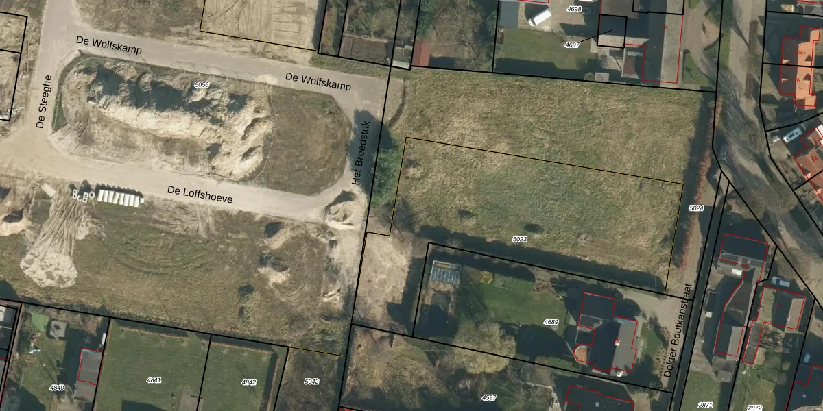 Het Breedstuk 7 is gelegen op kadastraal perceel HWK02B5023. Deze kadastrale aanduiding is uniek en wordt gebruikt door het Kadaster om eigendomsrechten en andere zakelijke rechten vast te leggen. Het perceel maakt onderdeel uit van de kadastrale gemeente Heeswijk-Dinther.