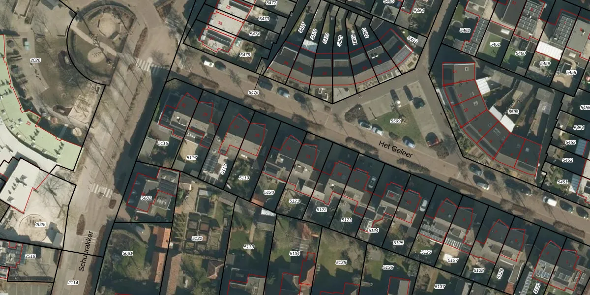 Het Geleer 23 is gelegen op kadastraal perceel HWK02C5120. Deze kadastrale aanduiding is uniek en wordt gebruikt door het Kadaster om eigendomsrechten en andere zakelijke rechten vast te leggen. Het perceel maakt onderdeel uit van de kadastrale gemeente Heeswijk-Dinther.