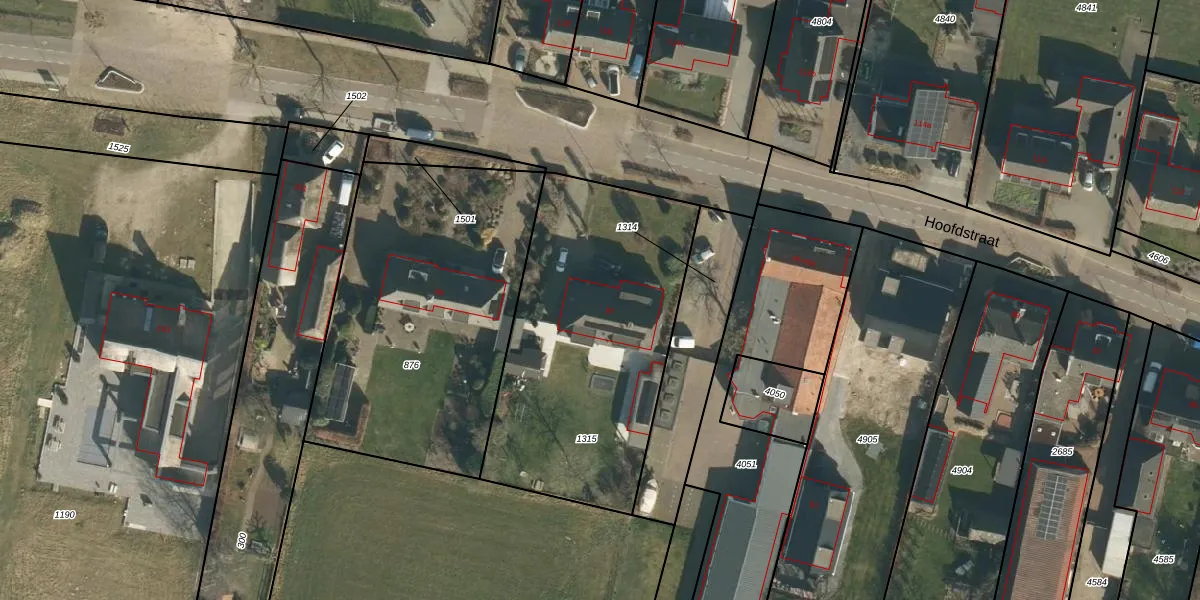 Het perceel waarop Hoofdstraat 97 staat heeft een oppervlakte van 1485 m². Dit is een zeer groot perceel. De perceeloppervlakte wordt geregistreerd door het Kadaster. Gedetailleerde informatie over de maten van dit perceel kunt u vinden in het rapport Kadastrale kaart met maatvoering van Hoofdstraat 97.